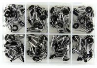 Используется для ремонта и восстановления изношенных "тюльпанов" на кончике удилища. Набор состоит из 8 размеров колец подходящих для большинства удочек и спиннингов. В процессе лова рыбы, особенно с применение плетеной лески, "тюльпан" - проходное кольцо, на кончике удилища, в первую очередь приходит в негодность. Изношенное кольцо портит дорогостоящий плетеный шнур, рвет и "лохматит" леску. Рекомендуется раз в сезон заменять проходное кольцо на кончике удилища, эта недорогая операция позволит сохранить плетеный шнур в рабочем состоянии более продолжительное время.