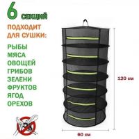 Сушильная сетка на 6 секций выполнена из качественного, прочного, мелкоячеистого, нетоксичного материала и может использоваться для сушки рыбы, грибов, овощей, фруктов, травяных сборов, зелени.