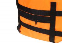 Жилет спасательный XXXS детский оранжевый. Сертифицированный. Рекомендуется на массу человека 12-15 кг. Имеет подголовник, нижнюю двойную шлейку и свето-возвращательные нашивки.